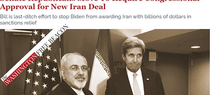 واشنگتن فری بیکن روز ۲۱خرداد درباره لایحه ارائه شده به سنای آمریکا درباره توافق با رژیم آخوندی نوشت: سناتورهای جمهوری خواه در سنای آمریکا روز جمعه در ا قدامی توافق جدید با رژیم ایران را منوط به تصویب کنگره و سنا کردند. این لایحه آخرین تلاش برای متوقف کردن بایدن از دادن جایزه چند میلیارد دلاری با برداشتن تحریمهای رژیم ایران است. سناتورها قوانینی را معرفی کردند، که بر اساس آن رئیسجمهور را ملزم خواهد کرد، تا قبل از امضای توافق هستهیی جدید با رژیم ایران، مجوز تأیید کنگره و سنا را بگیرد.