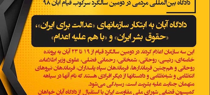 دادگاه آبان به ابتکار سازمانهای «عدالت برای ایران»، «حقوق بشر ایران» و «با هم علیه اعدام»