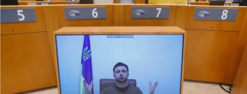 ولودیمیر زلنسکی رئیس جمهور اوکراین روز ۱۰ اسفند طی سخنانی در پارلمان اروپا مورد استقبال فوق العاده نمایندگان در اجلاس اضطراری این پارلمان قرار گرفت.
