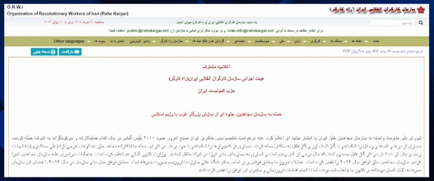 ما حمله جنایتکارانه به مراکز سازمان مجاهدین در آلبانی و ممنوعیت برگزاری تظاهرات این سازمان بهمناسبت سی خرداد در پاریس را بهشدت محکوم میکنیم. از نظر ما محدودیت فعالیت این سازمان، حمله آشکاری به حق نیروهای اپوزیسیون رژیم اسلامی برای فعالیتهای سیاسی علیه حاکمیت جنایتپیشه اسلامی در ایران است. ما همچنین به تمامی نیروهای اپوزیسیون این نکته را یادآور میشویم که آویزان شدن به کشورهای غربی برای پیشبرد مبارزه علیه جمهوری اسلامی، آویزان شدن به طناب منافع ملی کشورهایی است که هر لحظه ممکن است از سوی دولت هایشان بریده شود. مبارزه انقلابی مردم ایران برای پیروزی به قدرت و توان اردوی همبسته کارگران، زحمتکشان و اکثریت عظیم مردم ایران نیاز دارد نه به وعدههای ناشی از منافع ملی دیگر کشورها. نافرمانی مدنی زنان شجاع و دلیر، مقاومت مدنی دانشجویان آگاه و جسور، جنبش مطالباتی بازنشستگان نجیب، جمعههای حماسی مردم بلوچستان، همبستگی زیبا و تحسینبرانگیز دادخواهان عزیز از دست داده در سراسر ایران و بهویژه در کردستان قهرمان، عدم تمکین نام آوران هنر، فرهنگ و ورزش علیه بایدها و نبایدهای تاریک اندیشان، عرصه زیبای پیشروی و منبع قدرت لایزال خیزش انقلابی ژیناست. گل همین جاست، همین جا برقص!