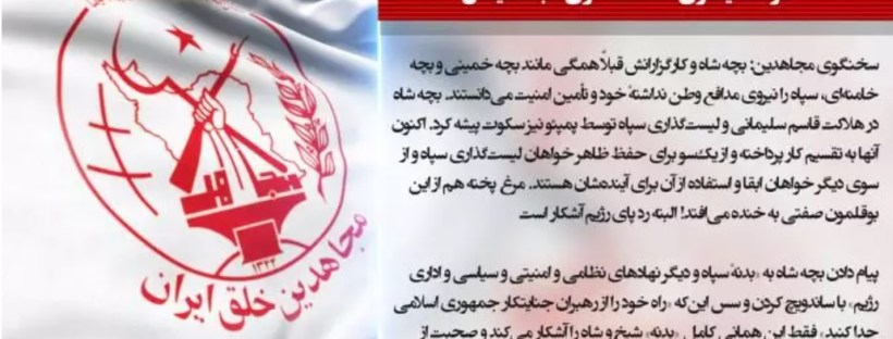 سخنگوی مجاهدین: بچه شاه و کارگزارانش قبلاً همگی مانند بچه خمینی و بچه خامنهای، سپاه را نیروی مدافع وطن نداشتهٔ خود و تأمین امنیت میدانستند