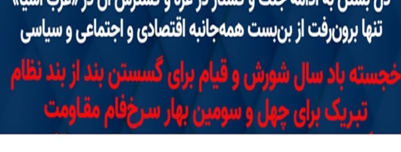 1402/02/03 گرامیداشت روز جهانی کارگر در ۱۱ اردیبهشت ۱۴۰۲ فراخوان به حمایت از اعتصابهای کارگران صنایع نفت و پتروشیمی در سراسر میهن قیام و آتش لازمهٔ سرنگونی خامنهای و رژیم ضدبشری و رهایی کارگران و زحمتکشان و تمامی مردم ایران است کارگران و زحمتکشان، ارتش قیام و آزادی، در شرایطی به استقبال از روز … ادامه خواندن گرامیداشت روز جهانی کارگر در ۱۱ اردیبهشت ۱۴۰۲ – فراخوان به حمایت از اعتصابهای کارگران صنایع نفت و پتروشیمی در سراسر میهن