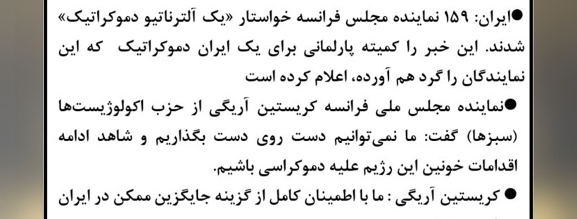 خبرگزاری فرانسه – ایران: ۱۵۹ نماینده مجلس فرانسه خواستار «یک آلترناتیو دموکراتیک» شدند – ۱