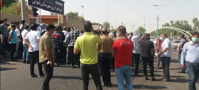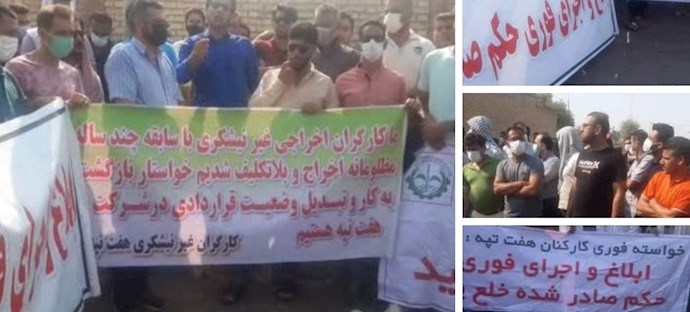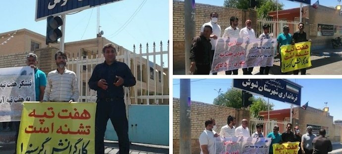 تجمع اعتراضی کارگران هفتتپه در مقابل فرمانداری شوش