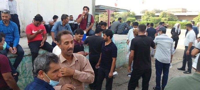 تجمع اعتراض نیروهای اخراجی مخابرات منطقه خوزستان مقابل شرکت