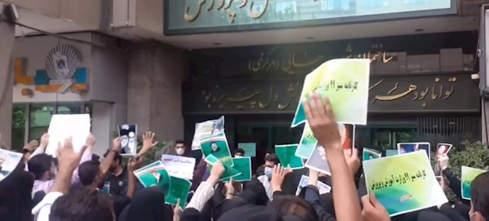 تجمع اعتراضی غارتشدگان بورس در مقابل سازمان برنامه و بودجه با شعار «مرگ بر این دولت مردم فریب»