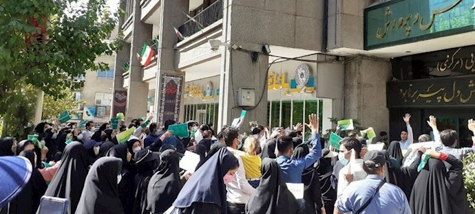 1400/04/24 روز چهارشنبه ۲۳تیر ۱۴۰۰ جمعی از کارگران و بازنشستگان تأمین اجتماعی در آستانه سالروز تأمین اجتماعی با درخواست رسیدگی به مطالبات حقوقی خود در خانه ضدکارگر تهران تجمع اعتراضی برگزار کردند.