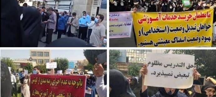 تجمع اعتراضی معلمین مریوان و معلمان خریدخدمات آموزشی تهران