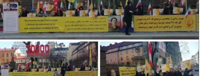 تظاهرات ایرانیان آزاده و بستگان شهیدان سربهدار در سوئد همزمان با دادگاه دژخیم حمید نوری در ۲۲ بهمن سالگرد انقلاب ضدسلطنتی