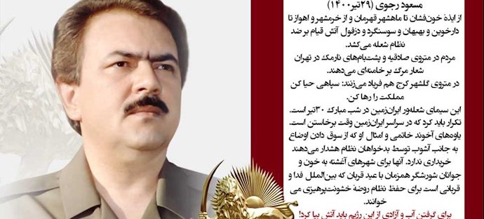 مسعود رجوی: در آستانهٔ ۵مهر ”شاه سلطان ولایت مرگت فرا رسیده“. تمام روضهخوانیهای خشونتپرهیزی با آتش شورشگران بار دیگر نقش بر آب شد