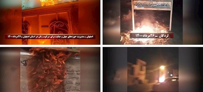 به آتش کشیدن مراکز و نمادهای رژیم در شهرهای میهن توسط کانونهای شورشی