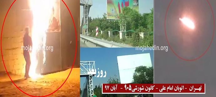 1397/08/18 فعالیت کانونهای شورشی - بهآتش کشیدن تصویر خمینی و خامنهای به آتش کشیدن نمادهای حکومت پلید آخوندی توسط کانونهای شورشی در شهرهای مختلف، نمودی دیگر از فراخوان به اعتراض و قیام برای تحقق سرنگونی رژیم ولایت فقیه در دوران آمادهباش برای سرنگونی. کانونهای شورشی بیلبورد خامنهای در تهران را بهآتش کشیدند اعضای کانون شورشی ۹۰۵ تهران، … ادامه خواندن بهآتش کشیدن تصاویر ولیفقیه ارتجاع در تهران و ساری- فعالیت کانونهای شورشی در شهرهای ایران
