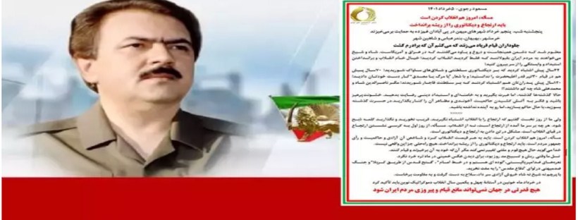 1401/04/25 مسعود رجوی رهبر مقاومت ایران - وزارتخارجه آخوندها اعلام کرد: بر اساس قانون مقابله با نقض حقوقبشر و اقدامات ماجراجویانه و تروریستی آمریکا در منطقه ۶۱ شخصیت برجسته آمریکایی بهعلت حمایت عامدانه از مجاهدین از طریق مشارکت در نشست، تأیید اهداف و اقدامات و حمایت سیاسی و تبلیغاتی از آنها، تحت تحریم قرار میگیرند. … ادامه خواندن مسعود رجوی: آزاد کردن اسدالله اسدی و مزدوران نفوذی نقض آشکار قوانین بینالمللی بهویژه قطعنامه ۱۳۷۳ شورای امنیت ملل متحد است