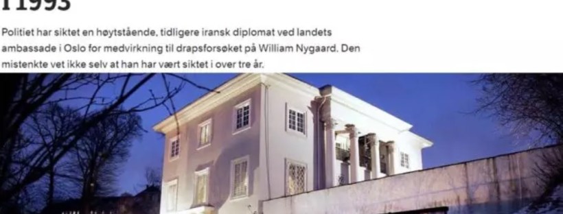 تلویزیون NRK نروژ: پلیس نروژ دیپلمات سفارت رژیم ایران در اسلو را به ترور ویلیام نیگارد در سال۱۹۹۳ متهم کرد