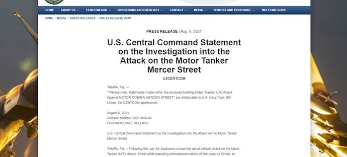 ستاد نیروهای مرکزی آمریکا: پهپادهای عامل حمله به کشتی مرسر استریت، در ایران ساخته شدهاند