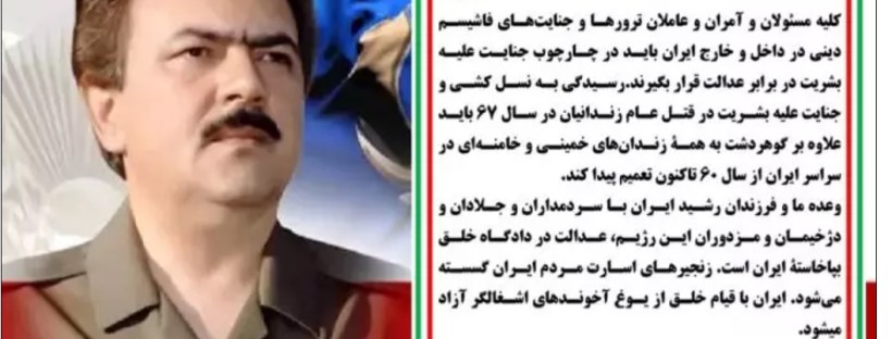 1400/05/14 معرفی کتاب «ایران، فراخوان برای عدالت، پرونده حسابرسی از ابراهیم رئیسی بهخاطر جنایت علیه بشریت» واشنگتن کنفرانس دفتر نمایندگی شورای ملی مقاومت با حضور شخصیتهای برجسته سیاسی و حقوقی ۱۴مرداد۱۴۰۰-۵ اوت ۲۰۲۱ همزمان با تحلیف آخوند ابراهیم رئیسی جلاد قتلعام ۶۷ دفتر نمایندگی شورای ملی مقاومت ایران در آمریکا با برگزاری یک … ادامه خواندن واشنگتن _ کنفرانس دفتر نمایندگی شورای ملی مقاومت؛ معرفی کتاب «ایران، فراخوان برای عدالت، پرونده حسابرسی از ابراهیم رئیسی بهخاطر جنایت علیه بشریت»