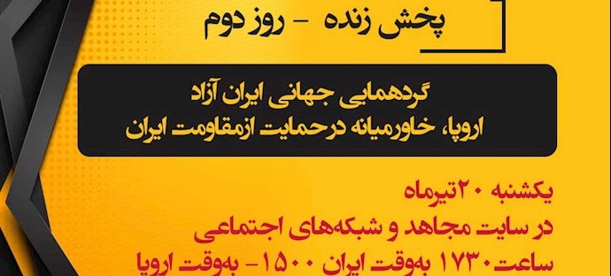 1400/03/30 مراسم ۳۰خرداد چهلمین سالگرد مقاومت انقلابی سراسری مراسم چهلمین سالگرد ۳۰خرداد، سرآغاز مقاومت انقلابی سراسری با حضور رئیسجمهور برگزیده مقاومت خانم مریم رجوی در اشرف۳ شروع شد. این مراسم بصورت آنلاین از طریق تلویزیون ملی ایران و بسیاری از وب سایتها و شبکههای اجتماعی مقاومت ایران در حال پخش است. تجمعات هموطنان آزاده در ۱۷کشور … ادامه خواندن مراسم چهلمین سالگرد مقاومت انقلابی سراسری – روز شهیدان و زندانیان سیاسی – سالروز تأسیس ارتش آزادیبخش
