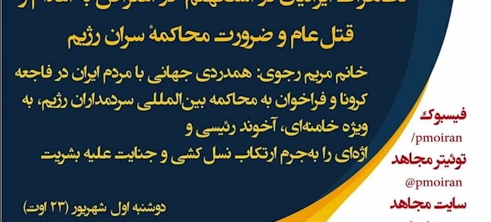 مسعود رجوی: دعوت از خامنهای و رئیسی و اژهای و دیگر جلادان و دژخیمان نظام به دادگاه کیفری بینالمللی