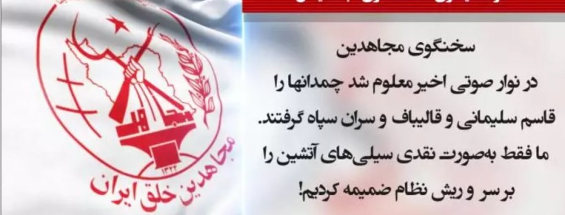 1402/02/27 سخنگوی مجاهدین یک کانال تلگرامی اطلاعات سپاه پاسداران به نام صابرین نیوز در انتهای یک موضعگیری جعلی از جانب سخنگوی مجاهدین نتیجهگیری کرد «سازمان تروریستی منافقین مسئولیت عملیات تروریستی در خانه اصفهان را برعهده گرفت»! صابرین نیوز متعلق به اطلاعات سپاه در جعل احمقانه خود بهنقل از سخنگوی مجاهدین نوشت، سه جوان غیور اصفهانی … ادامه خواندن جعل احمقانه کانال تلگرامی اطلاعات سپاه پاسداران به نام صابرین نیوز و موضعگیری سخنگوی مجاهدین