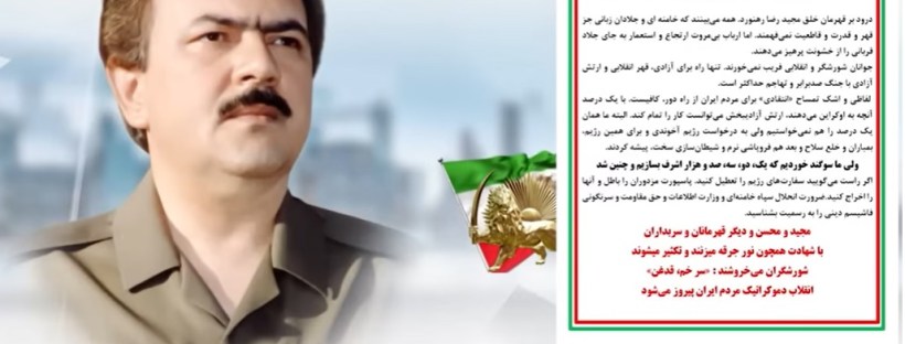 1398/10/13 مسعود رجوی: قاسم سلیمانی آن روی سکه ابوبکر بغدادی است. دوقلوهای همزاد بهاصطلاح شیعه و سنی با پدرخوانده واحد که همانا ولایت فقیه است. مسعود رجوی: هلاکت قاسم سلیمانی ترسیم کننده مرزهای دوست و دشمن در منطقه است. کسانی که با رژیم و قاسم سلیمانی هستند ماهیت ارتجاعی خود را برملا میکنند و نیروهای … ادامه خواندن پیام مسعود رجوی – ۱۳دی ۱۳۹۸
