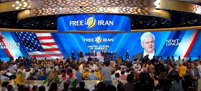 نیوت گینگریچ، رئیس پیشین کنگره آمریکا، در گردهمایی بزرگ مقاومت ایران در پاریس